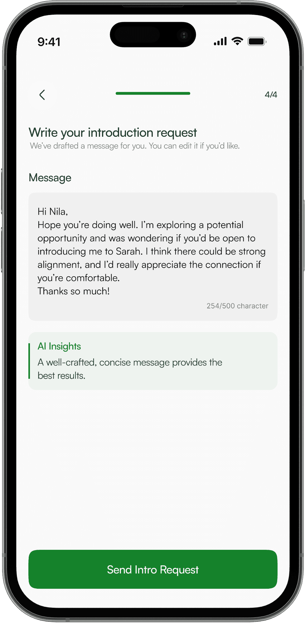 AI surfaces potential introductions, but people remain in control every step of the way.
