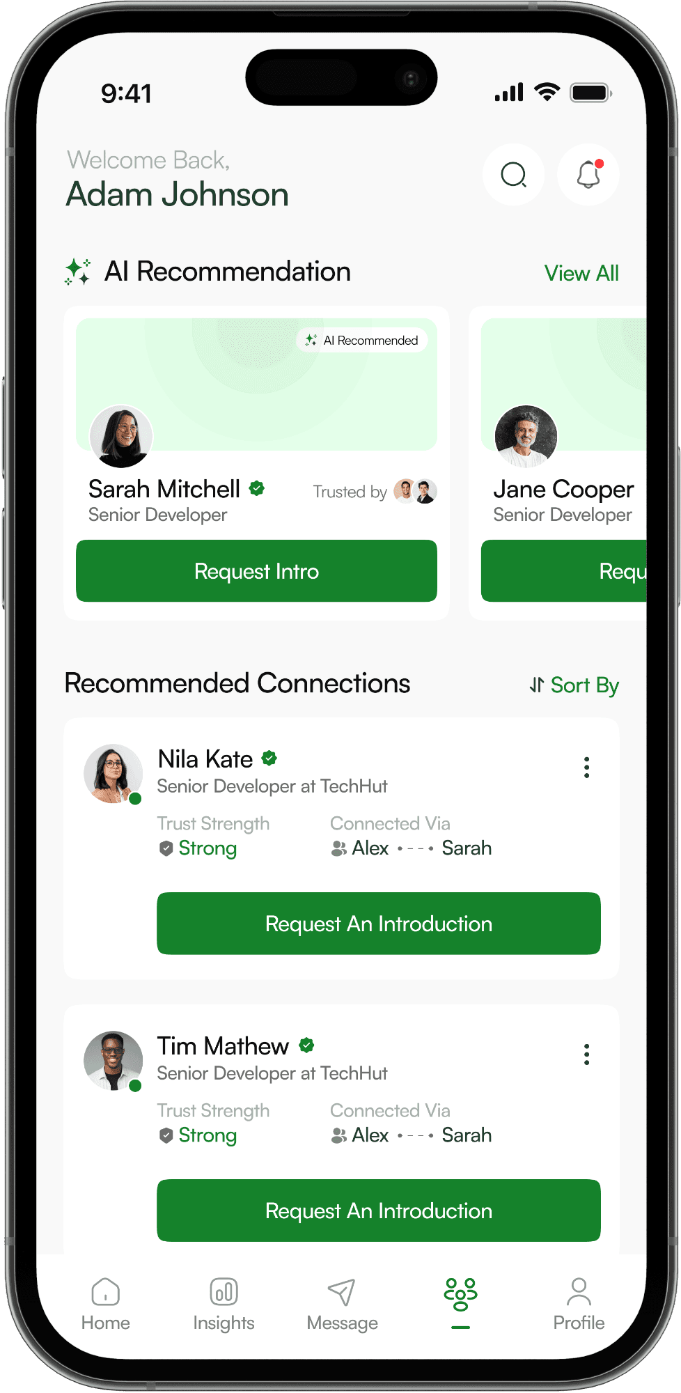 Introductions, guided by trust and context.